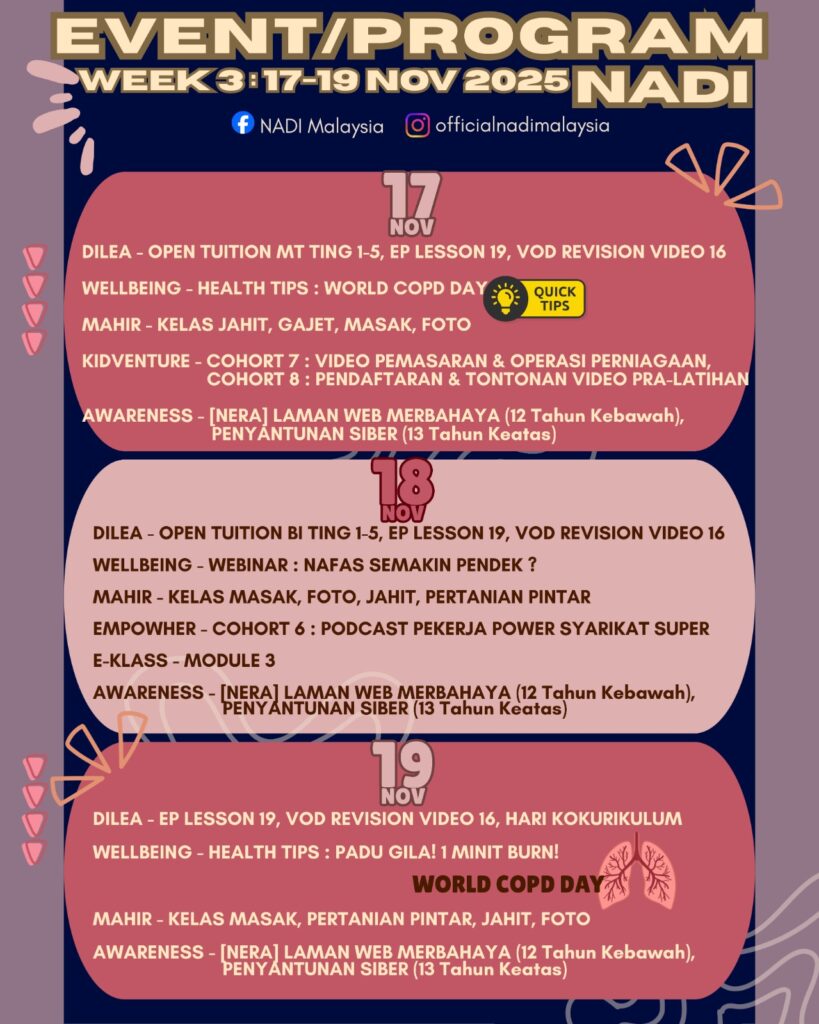 EVENT/PROGRAM WEEK 3 NADI : 17-19 NOV 2025