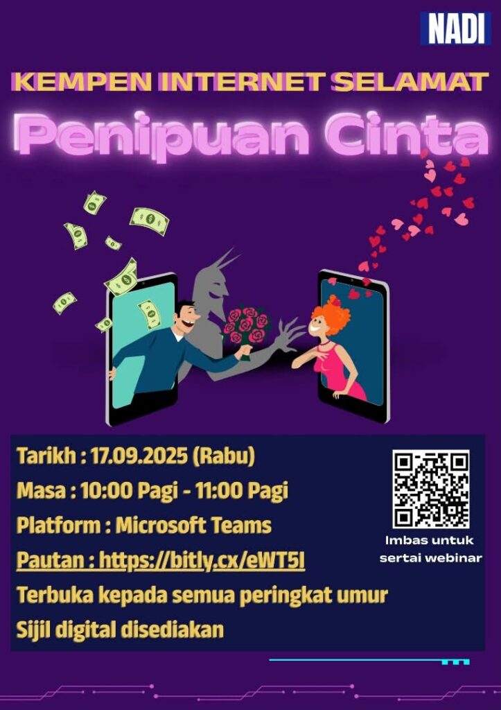 JOM SERTAI WEBINAR KEMPEN INTERNET SELAMAT – PENIPUAN CINTA 💔