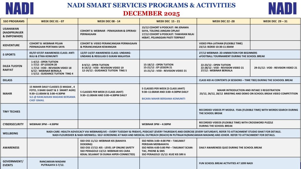 SMART SERVICES PROGRAMS & ACTIVITIES NADI DECEMBER 2025