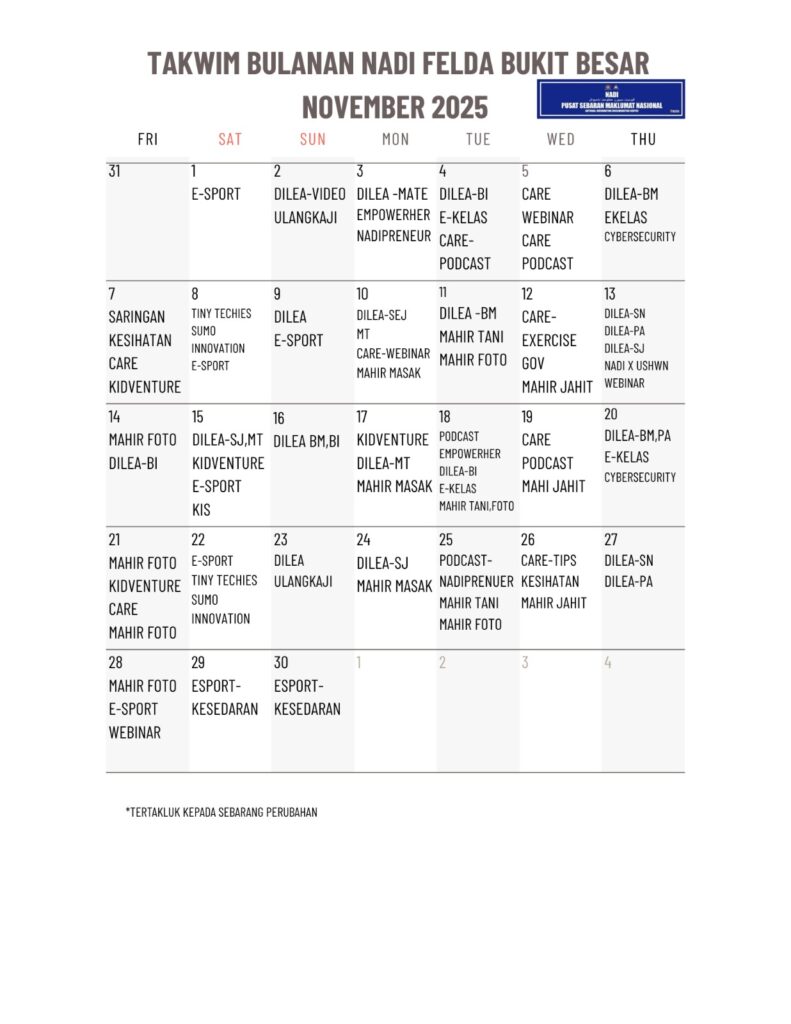 TAKWIM NADI FELDA BUKIT BESAR BULAN NOVEMBER 2025